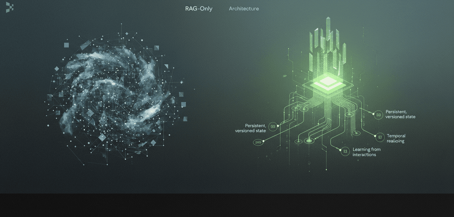 RAG provides retrieval. Memory-first architectures provide learning, adaptation, and temporal awareness.